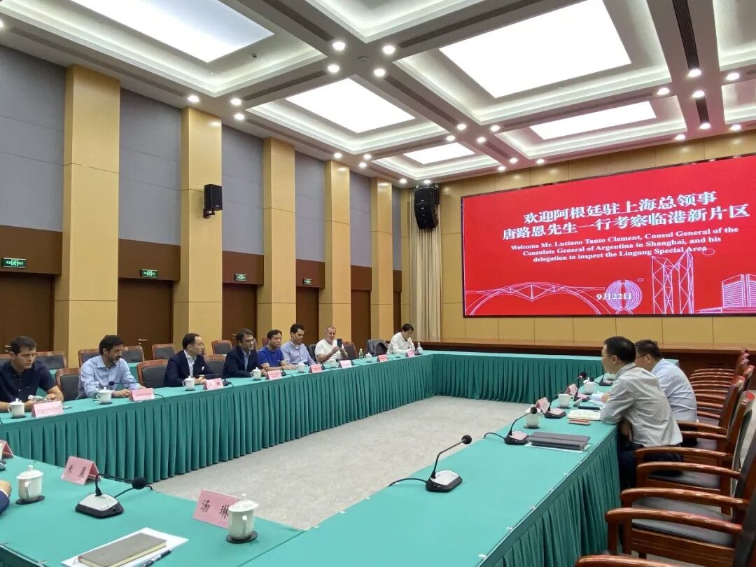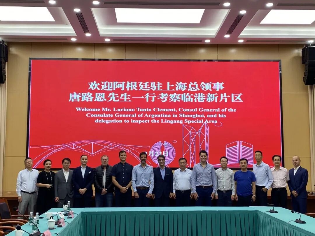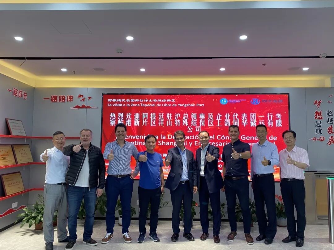 El 22 de septiembre, el Sr. Luciano Tanto Clement, el Cónsul General de Argentina en Shanghai, y una delegación de empresas argentinas, acompañados por el Sr. Jin Lin, el CEO del Hub Integral de Argentina de Shanghái, y otros representantes de empresas argentinas de la industria de piensos y porcina, se reunieron con el Sr. Zhao Yihuai, Subdirector del Comité Administrativo de la Nueva Área de Lingang, y otros dirigentes, y acudieron al centro de distribución de productos del Hub en la zona franca del puerto Yangshan.